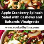 Apple Cranberry Spinach Salad with Cashews and Balsamic Vinaigrette