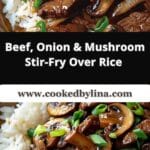 Beef, onion & mushroom stir-fry over rice is a quick, flavorful dish made with tender beef strips, sautéed onions and mushrooms, and a rich umami sauce. Served over warm rice, it’s comforting, satisfying, and perfect for busy weeknights.
