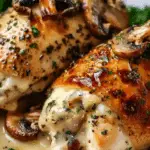Cheesy Garlic Butter Mushroom Stuffed Chicken is a rich and savory dish featuring juicy chicken breasts filled with a creamy garlic mushroom and cheese mixture, seared to golden perfection and baked for a flavorful, indulgent meal.