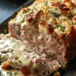 Chicken cordon bleu meatloaf is a hearty twist on a classic dish, combining ground chicken, ham, and Swiss cheese into a comforting baked loaf topped with a creamy Dijon sauce.