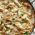 This Chicken Garlic Parmesan Pasta is a creamy and comforting dish made with juicy chicken, a rich garlic-butter sauce, and tender pasta, all finished with freshly grated Parmesan. Perfect for a satisfying and quick weeknight dinner.