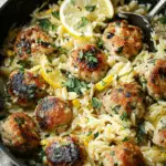 Chicken Piccata Meatballs with Orzo is a delicious take on the classic piccata dish. Juicy chicken meatballs are simmered in a tangy lemon-caper sauce and served over tender orzo pasta, making it a satisfying and flavorful meal for any night of the week.
