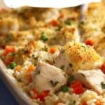 Chicken & Rice Casserole is a creamy, comforting one-dish meal made with tender chicken, fluffy rice, and savory sauce. Baked together until bubbly and golden, it’s a simple and hearty family favorite perfect for busy weeknights or make-ahead meals.