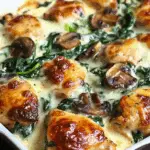 Chicken, Spinach, and Mushroom Low-Carb Oven Dish is a creamy, cheesy, protein-packed bake featuring tender chicken, sautéed mushrooms, and wilted spinach. It’s gluten-free, keto-friendly, and perfect for a comforting, easy-to-make one-dish meal.
