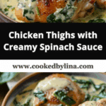 Chicken thighs with creamy spinach sauce is a comforting, flavorful dish where juicy seared chicken is coated in a rich garlic-spinach cream sauce. I love how it comes together in one pan and feels like a restaurant-style dinner at home.