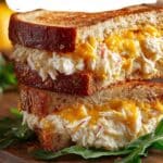 A warm, indulgent sandwich filled with creamy crab, sharp cheddar, and perfectly toasted bread. Easy to make and full of comfort food vibes.