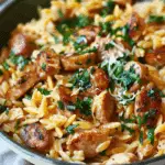 Creamy Chicken Sausage Orzo is a one-pan comfort dish that features tender orzo pasta, savory chicken sausage, and a rich garlic-Parmesan cream sauce. Quick to make and full of flavor, it’s perfect for weeknights.