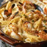 Creamy Seafood Baked Penne with Crispy Topping is a decadent pasta bake featuring tender seafood, penne in a velvety white sauce, and a crunchy panko-parmesan topping. Perfect for comforting dinners or special occasions.