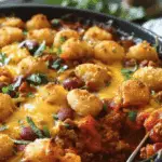 This Crispy Tot Chili Casserole is a comfort-food favorite that layers bold, hearty chili with crispy golden tater tots and melty cheddar cheese. It’s a fun, easy one-dish meal perfect for family dinners or casual gatherings.