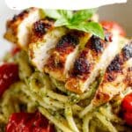 I sometimes swap the chicken for grilled shrimp or even leave it out for a vegetarian version. I also like to add spinach or arugula to the pasta for extra greens. For a creamier texture, I mix in a spoonful of cream cheese or a splash of cream with the pesto.