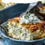 I love this recipe because it’s incredibly easy—no pre-cooking, no extra pans, and minimal cleanup. The tzatziki sauce gives the casserole a creamy, herby base that keeps the chicken and pasta moist while it bakes. It’s full of bright Mediterranean flavors, and it’s a complete meal in one pan. Dump-and-Bake Chicken Tzatziki Casserole