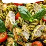 Easy Chicken Pesto Pasta Salad is a fresh, flavorful, and satisfying pasta salad that combines tender chicken, al dente pasta, juicy veggies, and bright basil pesto — perfect served cold or at room temperature for lunch, dinner, picnics, or meal prep.