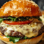 These Garlic‑Parmesan Cheeseburgers are juicy beef patties infused with garlic, topped with melted Parmesan cheese, and served on soft buns. They strike the perfect balance between savory, cheesy richness and hearty comfort.