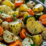 A flavorful and easy one-pan side dish featuring garlic-herb roasted baby potatoes, carrots, and zucchini. Perfectly caramelized with crisp edges and tender centers, it’s a wholesome, versatile addition to any meal.