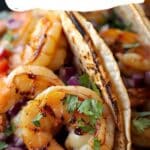 Fresh and flavorful grilled shrimp tacos with smoky marinated shrimp, crisp toppings, and a zesty creamy sauce, perfect for a quick and satisfying meal.