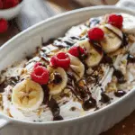 No Bake Banana Split is a layered dessert that captures all the fruity, creamy flavors of the classic ice cream treat—without the need for baking. It features bananas, pineapple, strawberries, whipped topping, and a buttery graham cracker crust. Perfect for parties, BBQs, and summer nights.
