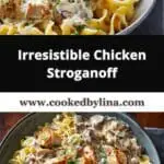 Irresistible Chicken Stroganoff is a creamy and comforting dish made with tender chicken strips simmered in a rich mushroom sauce with a smooth, velvety finish.
