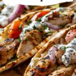 These Juicy Greek Chicken Gyros Wraps are packed with bold Mediterranean flavor, featuring marinated chicken, fresh vegetables, creamy tzatziki, and warm pita bread for a refreshing, handheld meal.