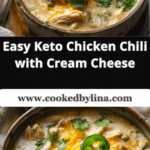 A rich and creamy low-carb chili made with shredded chicken, cream cheese, and bold spices—perfect for keto comfort food lovers.