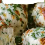 Melted Mozzarella & Ranch Chicken Bombs are crispy, cheesy chicken breasts coated in a flavorful Parmesan breadcrumb crust, pan-seared until golden, then baked with gooey mozzarella. It’s a bold, crowd-pleasing dish perfect for dinner any night of the week.