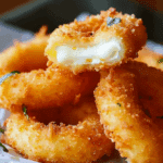 These mozzarella stick onion rings are a crispy, cheesy mashup of two classic snacks—onion rings and mozzarella sticks—making them a fun and indulgent appetizer for any occasion.