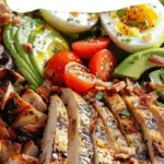 This Paleo Grilled Chicken Cobb Salad is a fresh, protein-rich, and dairy-free version of the classic Cobb. Loaded with grilled chicken, avocado, eggs, crisp vegetables, and a tangy paleo vinaigrette, it’s a wholesome and satisfying meal that’s perfect for lunch or dinner.