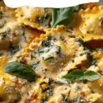 Ravioli in Creamy Tuscan Sauce is a rich and elegant pasta dish featuring cheese or spinach-filled ravioli tossed in a garlicky cream sauce with sun-dried tomatoes, spinach, and Parmesan. It’s indulgent, flavorful, and perfect for any occasion.