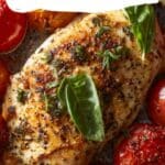 I also appreciate how light yet satisfying this meal feels. The melted mozzarella adds creaminess, and the fresh basil brightens every bite. Whenever I want something wholesome, colorful, and full of flavor without spending hours in the kitchen, this recipe is my go-to choice. Sheet Pan Caprese Chicken
