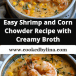 This shrimp corn chowder soup is creamy, hearty, and full of sweet corn, tender shrimp, and savory herbs. A comforting, cozy dish perfect for chilly evenings or an elegant seafood dinner.