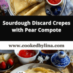 Sourdough Discard Crêpes with Pear Compote are delicate, thin pancakes made with leftover sourdough starter and topped with a warm, gently spiced pear compote. A refined yet simple dish perfect for breakfast, brunch, or dessert.