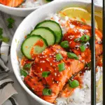 A quick, flavorful meal featuring spicy-sweet glazed salmon served over rice with crisp vegetables and fresh toppings. These customizable bowls are perfect for lunch or dinner.