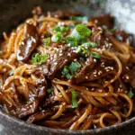 A quick and flavorful noodle stir-fry featuring tender beef, chewy noodles, crisp vegetables, and a glossy hoisin-based sauce. Sweet, savory, and umami-packed, it’s a perfect weeknight dinner in under 30 minutes.