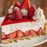 Sweet and simple strawberry delight cheesecake with a buttery graham cracker crust, creamy filling, and luscious strawberry topping, perfect for any occasion.