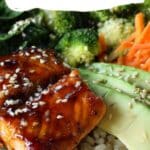 I love how this bowl gives me all the flavors of sushi in an easy-to-make format. The sweet and savory teriyaki salmon pairs perfectly with the rice and fresh vegetables. I also enjoy how customizable it is depending on what I have available.