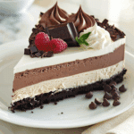 This Triple Chocolate Mousse Torte is a decadent, multi-layered dessert featuring a fudgy brownie base, a smooth milk chocolate mousse center, and a creamy white chocolate mousse topping—perfect for chocolate lovers and special occasions.