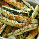 Crispy oven-baked zucchini fries coated with crunchy Japanese panko breadcrumbs and savory Parmesan cheese, offering a healthier and flavorful alternative to traditional fries.